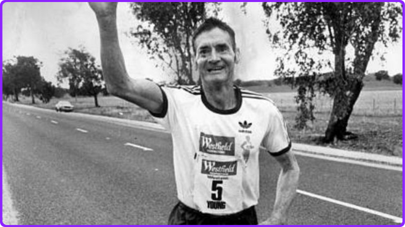 En 1983, Cliff Young s’inscrit à l’Ultramarathon de Sydney à Melbourne, une course d’ultra-endurance de 875 kilomètres (comptez 5 à 6 jours de course).